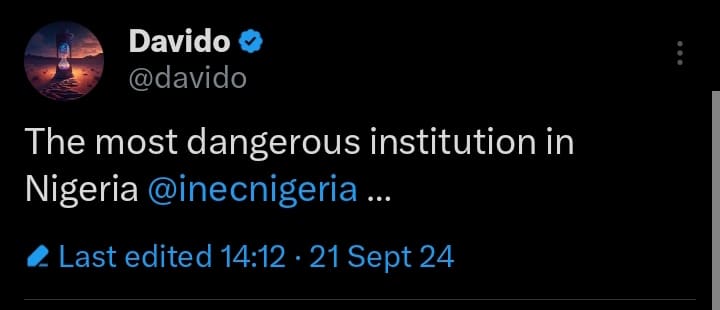 The musician took to his X page to comment on the 2024 Edo governorship election that held on the 21st of September 2024.