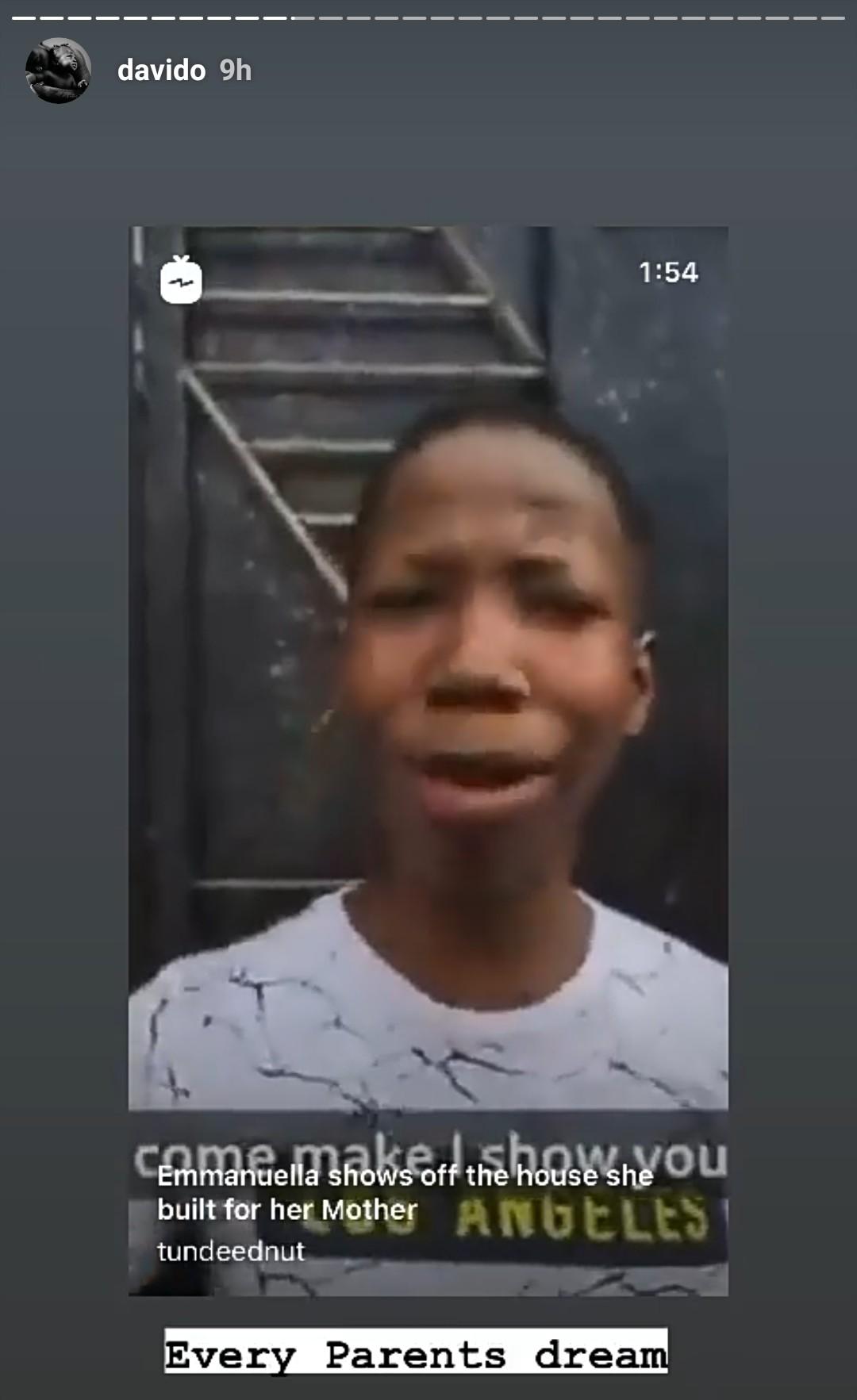 Davido reacts to video of 11-year-old Emmanuella showing off the house she built for her mom