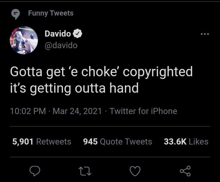 However, the DMW boss has taken to his Twitter account to disclose his intentions to copyright “e choke“.