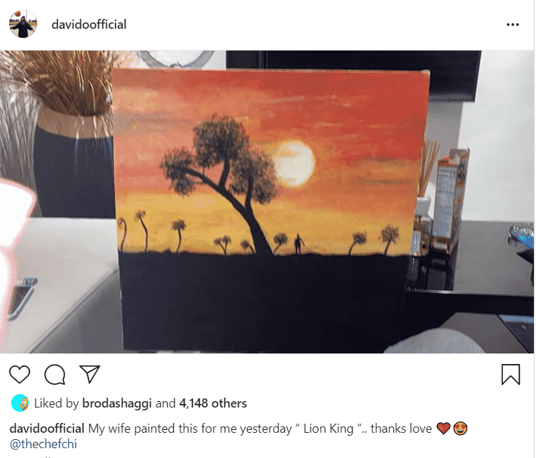 DMW boss, Davido Adeleke has showed off the ‘Lion King’ painting his fiancee Chioma made for him.