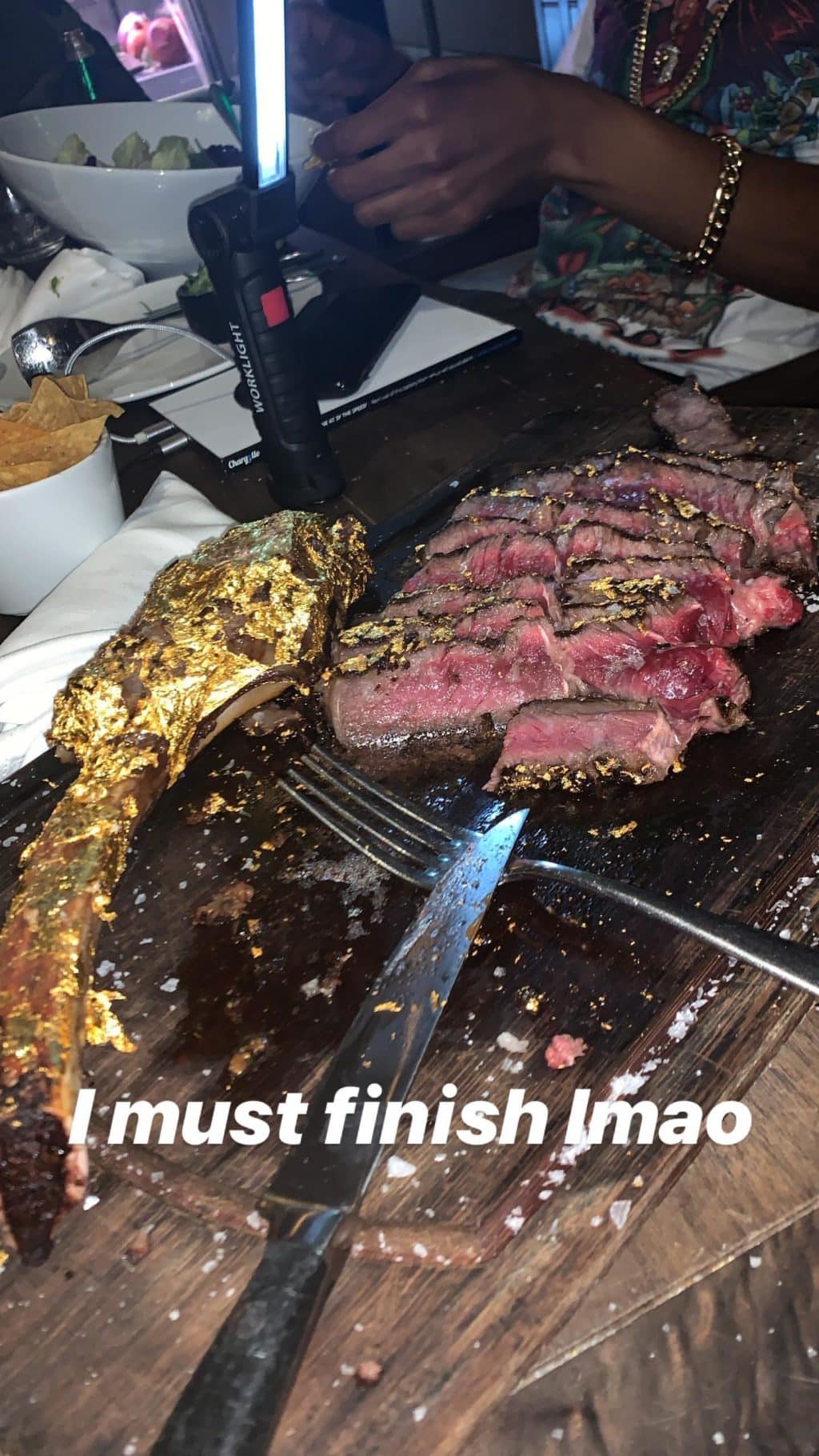 Davido spends N980,000 eating 24-karat gold coated meat (Photos+Videos)