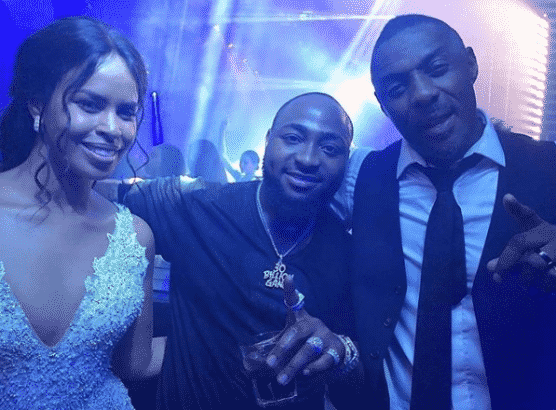 Nigerian pop star Davido was spotted at Idris Elba’s wedding with his beautiful wife, Sabrina Dhowre in Morocco yesterday.