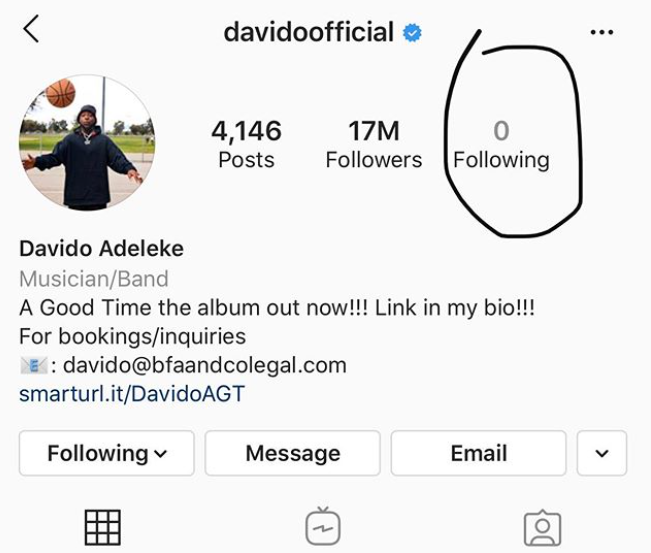 Davido unfollows everyone on Instagram as he continues to stay away from social media