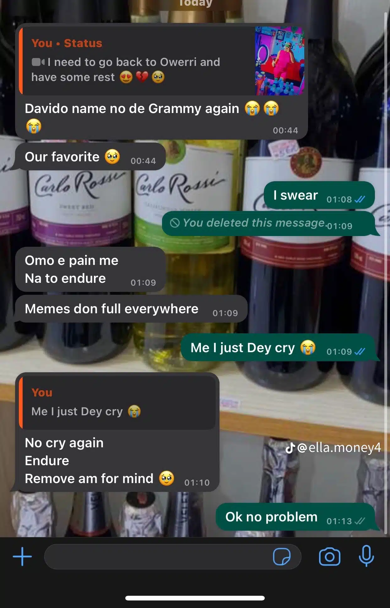 An additional caption reads, “My friend messaged me, saying sorry for what happened to Davido. No matter what, you’re still my best. I love you.”