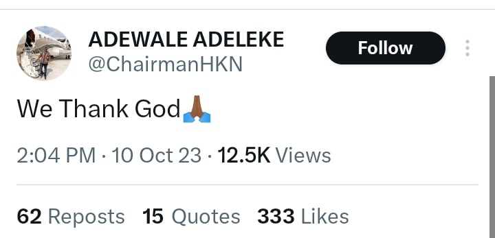 While these rumors are flying around on social media, Davido’s brother Adewale has given thanks to God for an undisclosed reason and this has fueled more hope among fans.