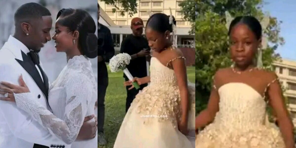 The duo is spotted in elegant white gowns, with Priscilla Ojo tenderly holding the little bride’s hands.