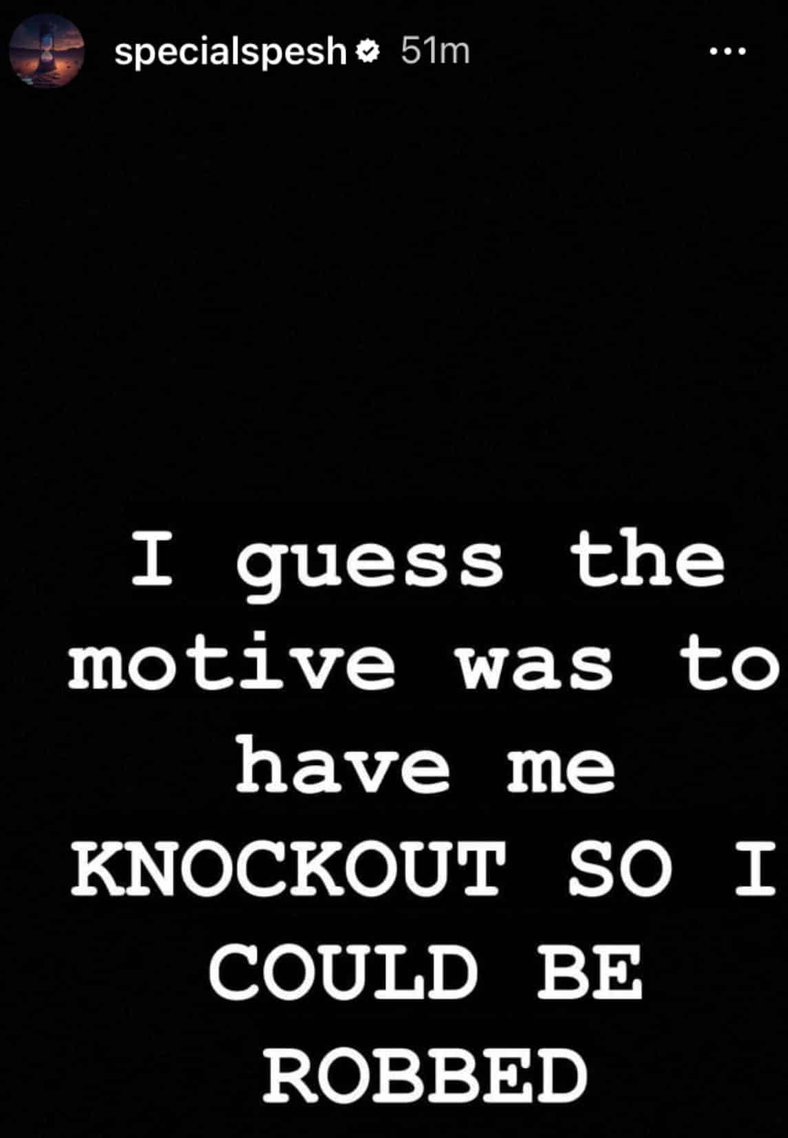 “I guess the motive was to have me KNOCKOUT SO I COULD BE ROBBED”