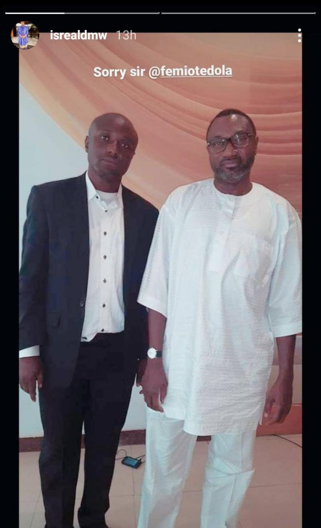 Israel, in his short message, apologized to Femi Otedola for speaking against his daughter, Cuppy. Israel claimed that his allegation was false, and he only said what he heard.