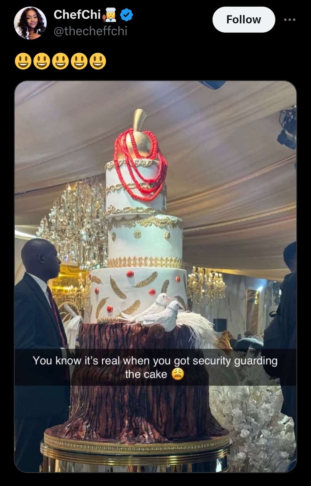 While many important personalities were present for the grand event, the sight of the wedding cake guarded by two security officers attracted the attention of many social media users.