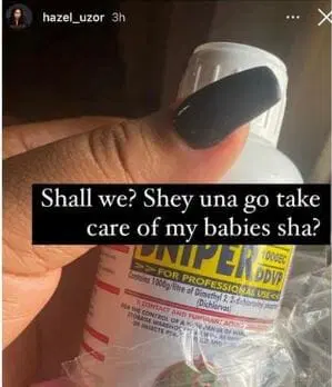 She posted a photo of a hand holding a bottle of a toxic substance, ‘Sniper‘,