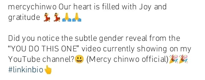 Mercy Chinwo further hinted about the subtle gender reveal in her latest music video titled, “You Do This One.”