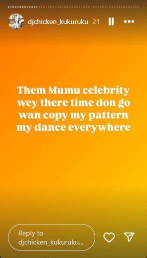“The kese dance keh awon efonu dey play. Them mmu celebrity wey there time don go wan copy my pattern my dance everywhere,” he wrote.