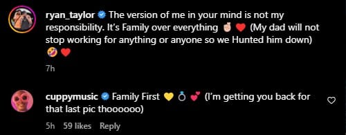 “The version of me in your mind is not my responsibility. It’s Family over everything 🤞🏼❤️ (My dad will not stop working for anything or anyone so we Hunted him down) 🤣❤️,” he wrote.