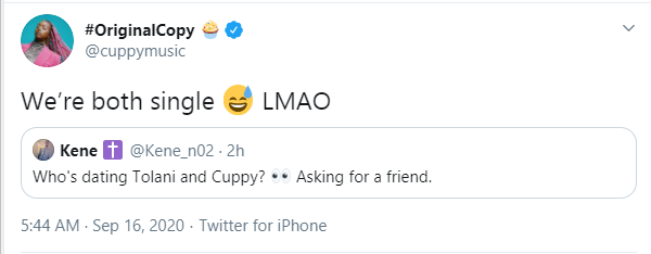 When asked who she and her sister are dating, DJ Cuppy wrote in response;