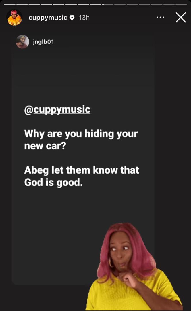 Dj Cuppy shows off her new N23M car, reveals reason for upgrade