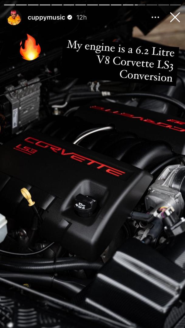 “Anyone that knows me knows how much I love cars. This has always been my dream. My engine is a 6.2 liter V8 Corvette Ls3 Conversion, Diamond stitching.