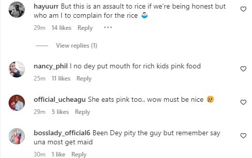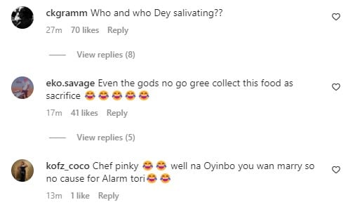 “😂😂😂😂😂😂 This is what the fiancée will be eating o with happiness. If you like, don’t hustle for your children.🤣🤣🤣,” a user wrote.