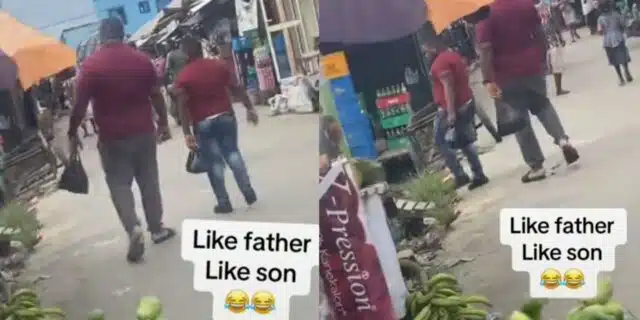 A Nigerian father and his lookalike son have sparked reactions in a video which surfaced on social media.