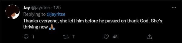Thanks everyone, she left him before he passed on thank God. She’s thriving now ??”