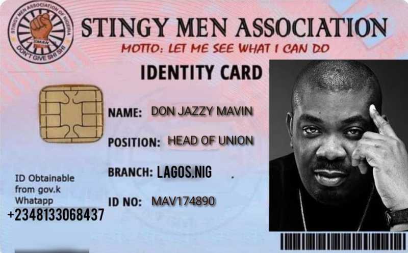 Don Jazzy however followed through with the trend by designing himself an ID card with the Stingy Men Association logo on it.