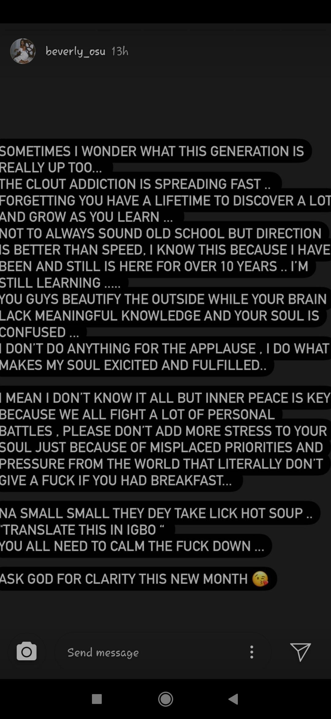However, Beverly Osu in a latest post on her Instagram story reveals how fans and top personalities are becoming addicted to clout chasing.