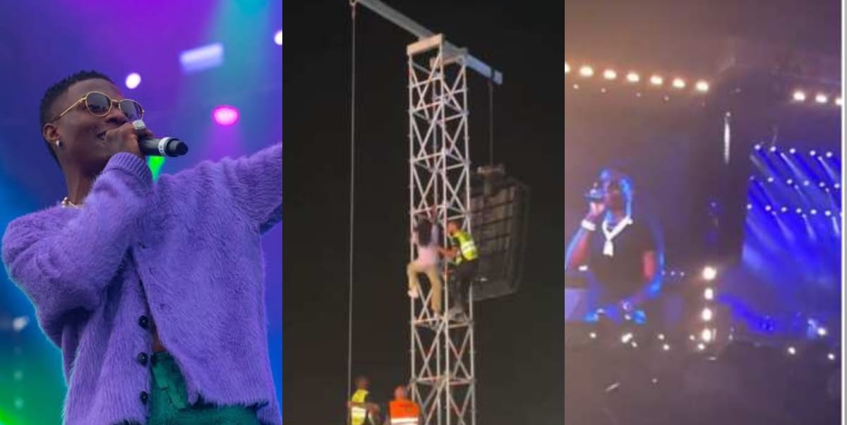 “Don’t kill yourself my man come down, we love you” – Wizkid shows compassion as fan climbs mast to witness performance (Video)
