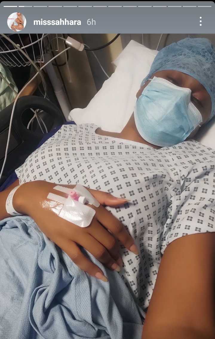 As seen on her Instagram story, Sahhara disclosed that she spent the night in the hospital after undergoing corrective surgery with the drains still attached.