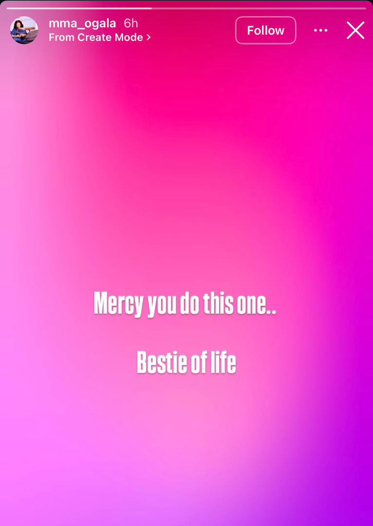 Reacting to the development, Doris Ogala took to her Instagram story to openly hail Mercy Johnson, writing: