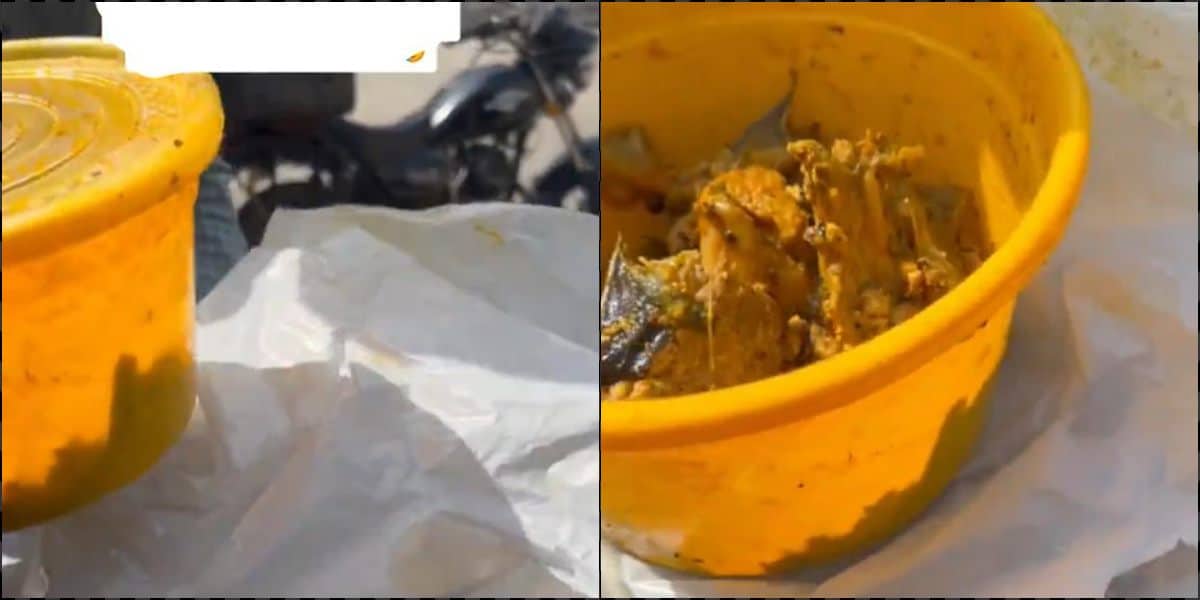 “My friend sent me a full bowl of banga soup and catfish and the rider ate half of it,” the caption on the video stated.