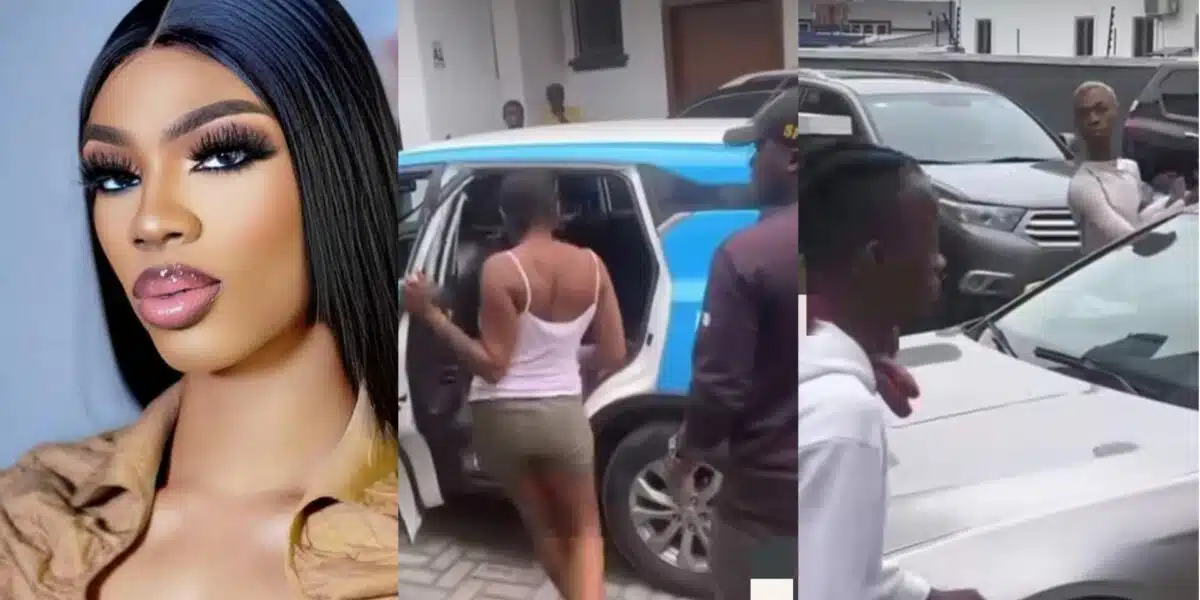 A video that surfaced online shows the moment the lady was being directed into a police car by the men while James Brown entered his own car.