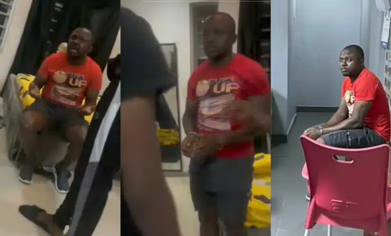 In the video shared online, the woman locked the man in a room and began interrogating him upon which it was learned that he had sneaked in to see the woman’s housemaid identified as Divine.