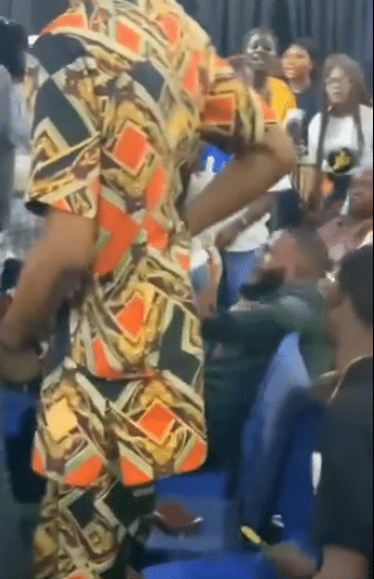 In a video circulating online, the woman’s brothers can be seen charging into the church hall and immediately confronting the young man, who was seated at the front row.