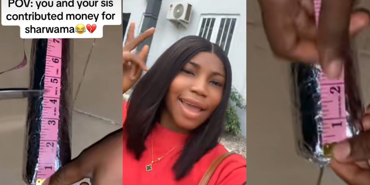 A beautiful Nigerian lady sparked conversations on social media when she used a tape measure to divide a shawarma she purchased with equal contributions from herself and her elder sister.