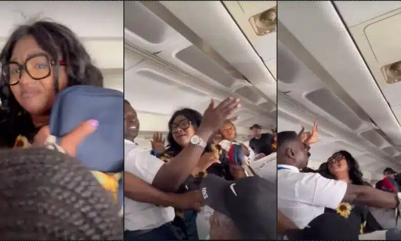 Drama as Nigerian woman fights her way off an aircraft over breathing problems (Video)