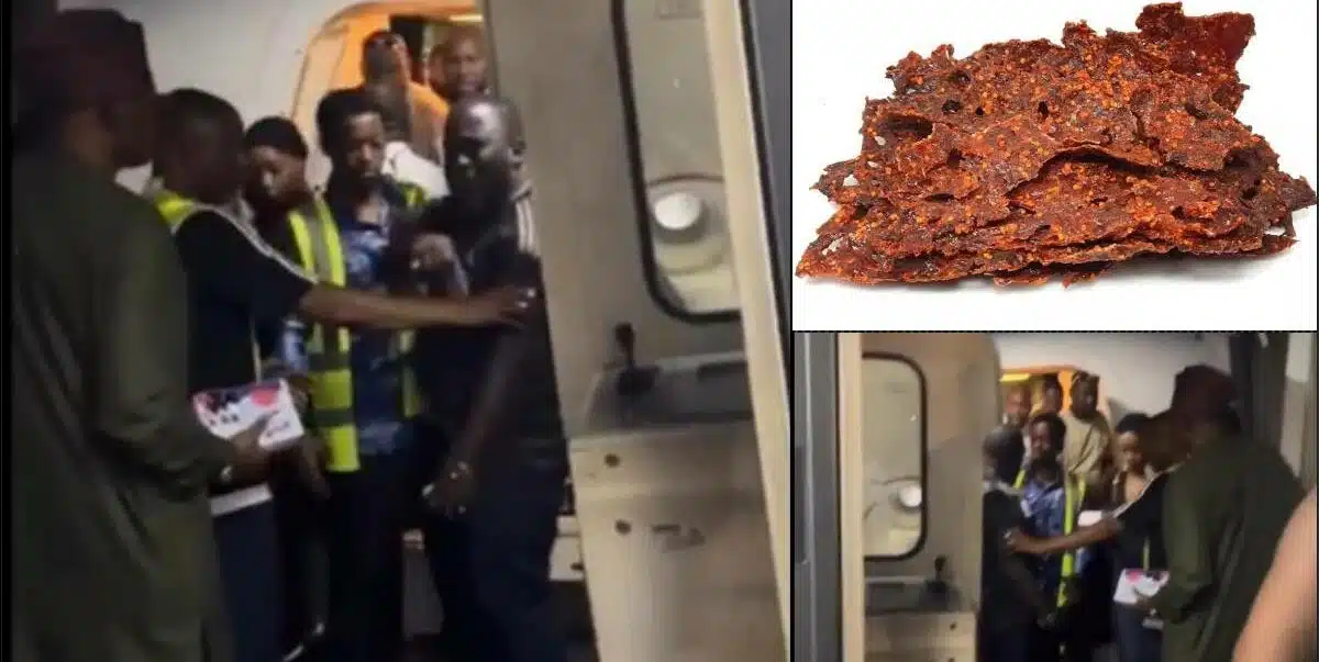 Drama ensues following arrival at the airport as a passenger accuses a member of a flight crew of stealing his bag of kilishi – a peppered dry meat snack.