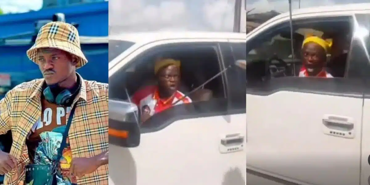 He was seen holding a gold stick while in his truck and furiously addressing the area boys that wanted to come close to his car.