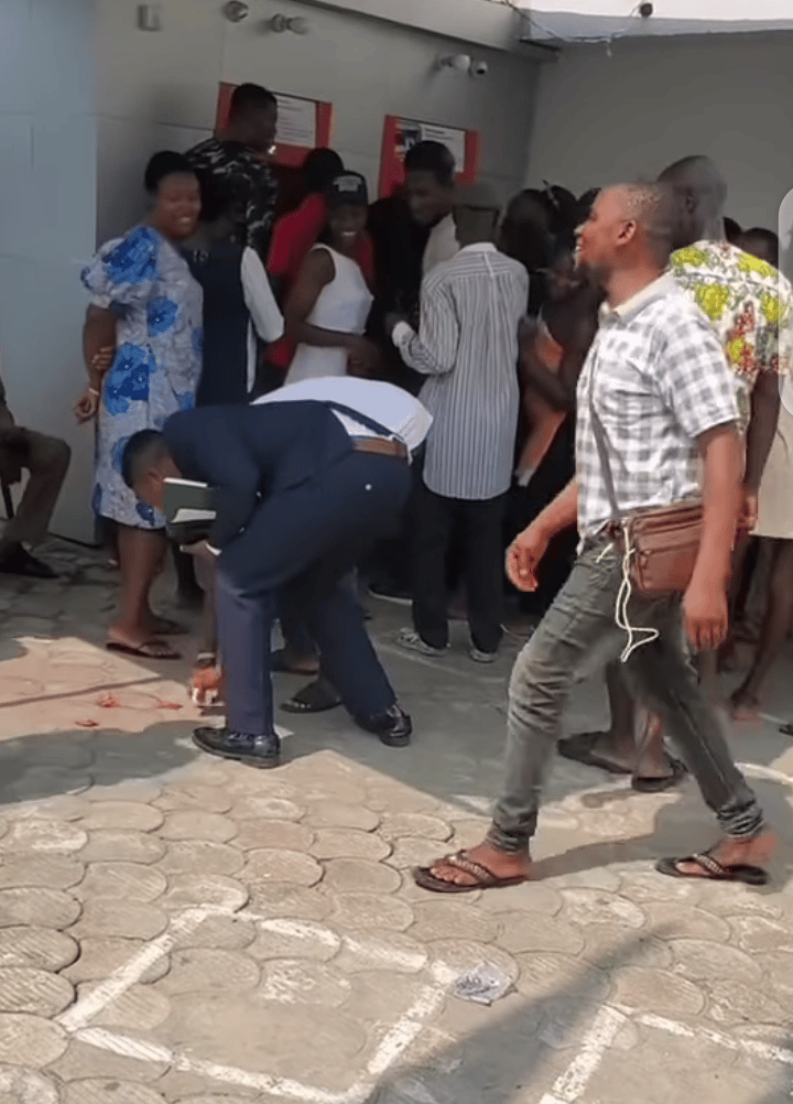 Drama as several packs of condoms fall off Nigeria pastor’s pocket at ATM stand (Video)
