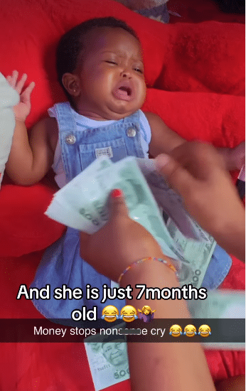 A parent’s unconventional solution sparks reactions as her baby immediately stops crying when she is sprayed money.