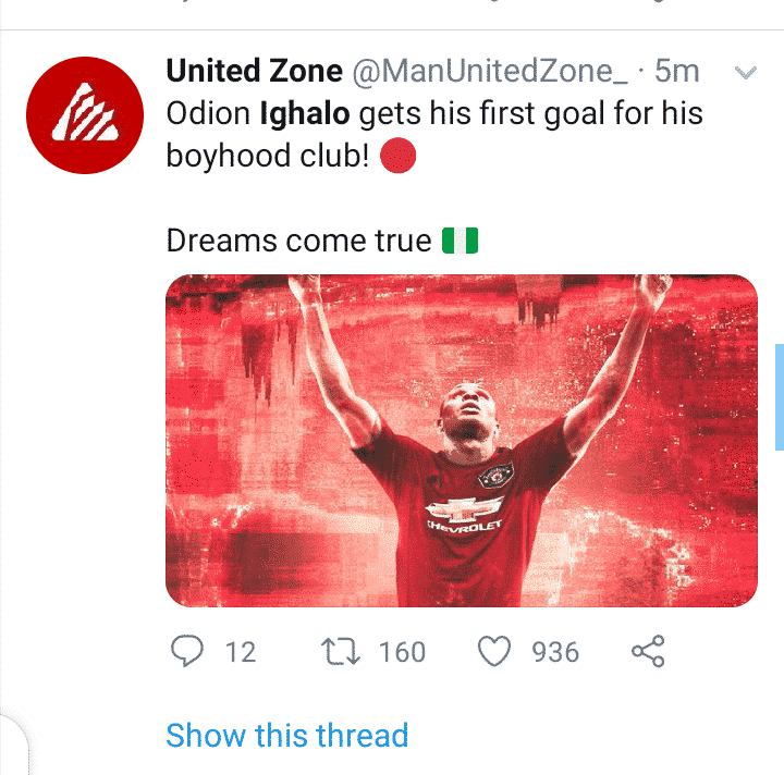 Ighalo’s goal came after a through pass from Fernandes found Mata on the side of the 18 yard box, Mata swiftly passed to Ighalo who shrugged off his opponent to score.