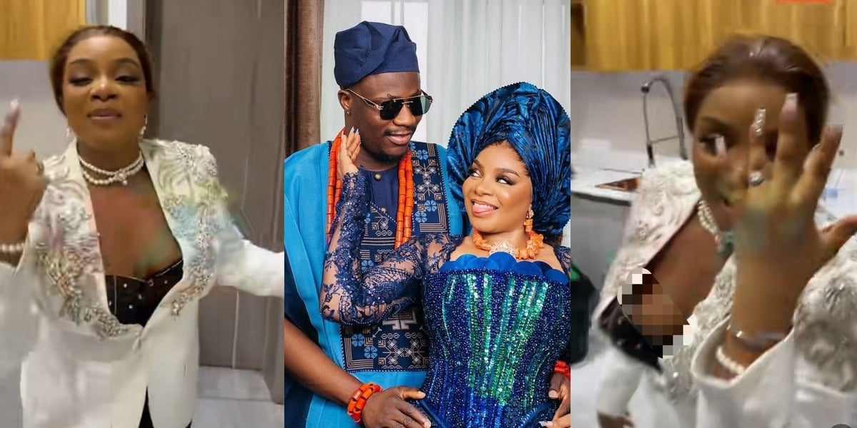 Reality TV star, Queen Mercy Atang sparked reactions as she delivered a message to an unnamed person while flaunting her wedding ring after a successful marriage to her fiancé, David.