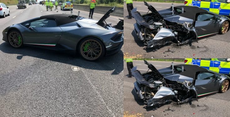 The brand new Lamborghini Huracan Spyder was smashed up on the motorway 20 minutes after the new owner had been handed the keys.