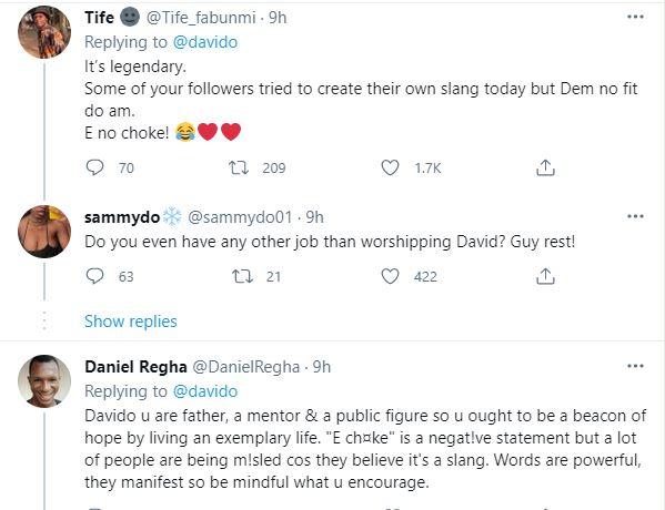Superstar Afrobeat singer, Davido Adeleke trigger reactions among fans and trolls combined after declaring his intentions of copyrighting the catchphrase ‘E Choke.’