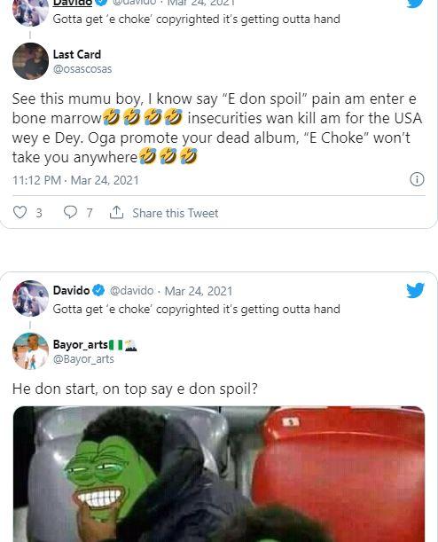 “E don spoil pain am enter bone” – Reactions as Davido intends to copyright ‘E Choke’