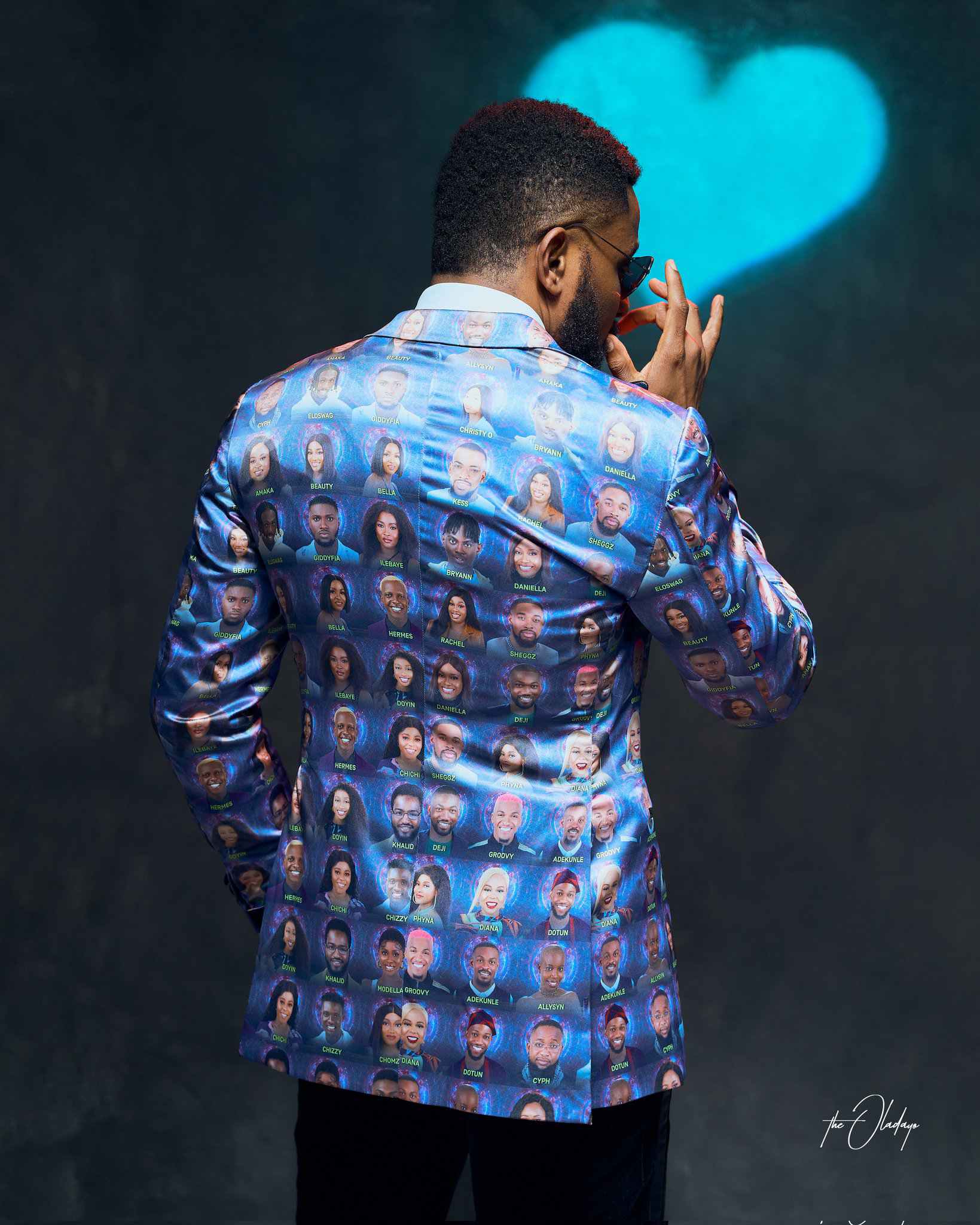 Ebuka dazzles in suit with all ‘Level Up’ housemates’ faces on it (Photo)