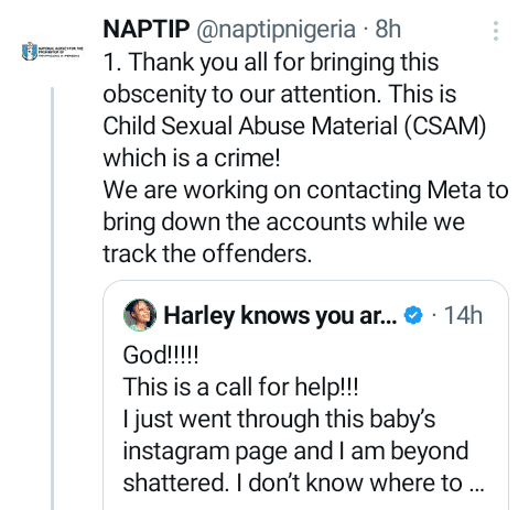 This comes after Nigerians on social media alerted authorities to indecent photographs of the child posted on the suspect’s Instagram account.