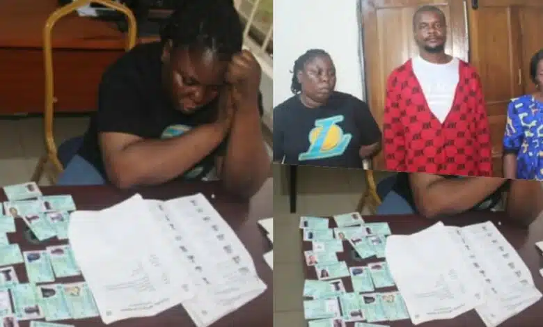 One of the suspects, Afekhana Esther, was arrested at Ward 1, St. Patrick’s Catholic Church, Ikpoba Okha, Benin City with 20 PVCs belonging to different people.