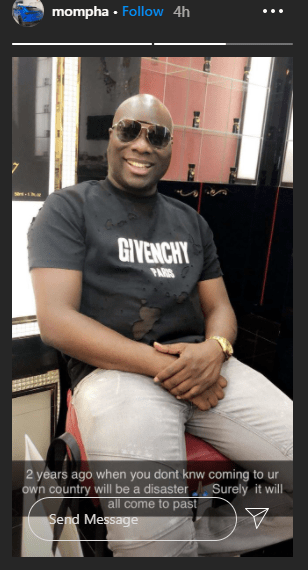 He wrote; “2 years ago when you dont knw coming to ur own country will be a disaster. Surely it will all come to past”