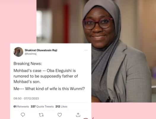 A Twitter user identified as Tosin Raj has found herself in trouble after tweeting that Oba Elegushi is the real father of Mohbad’s son, Liam.