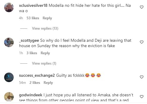 Modella, however, interrupted the speech as she says it to Amaka’s face of being guilty of everything she just stated.