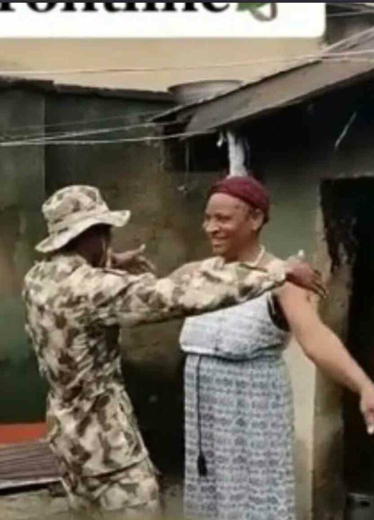 In the viral video, the soldier serenaded his mum by throwing her a respectful salute and then proceeded to marching gallantly towards her.
